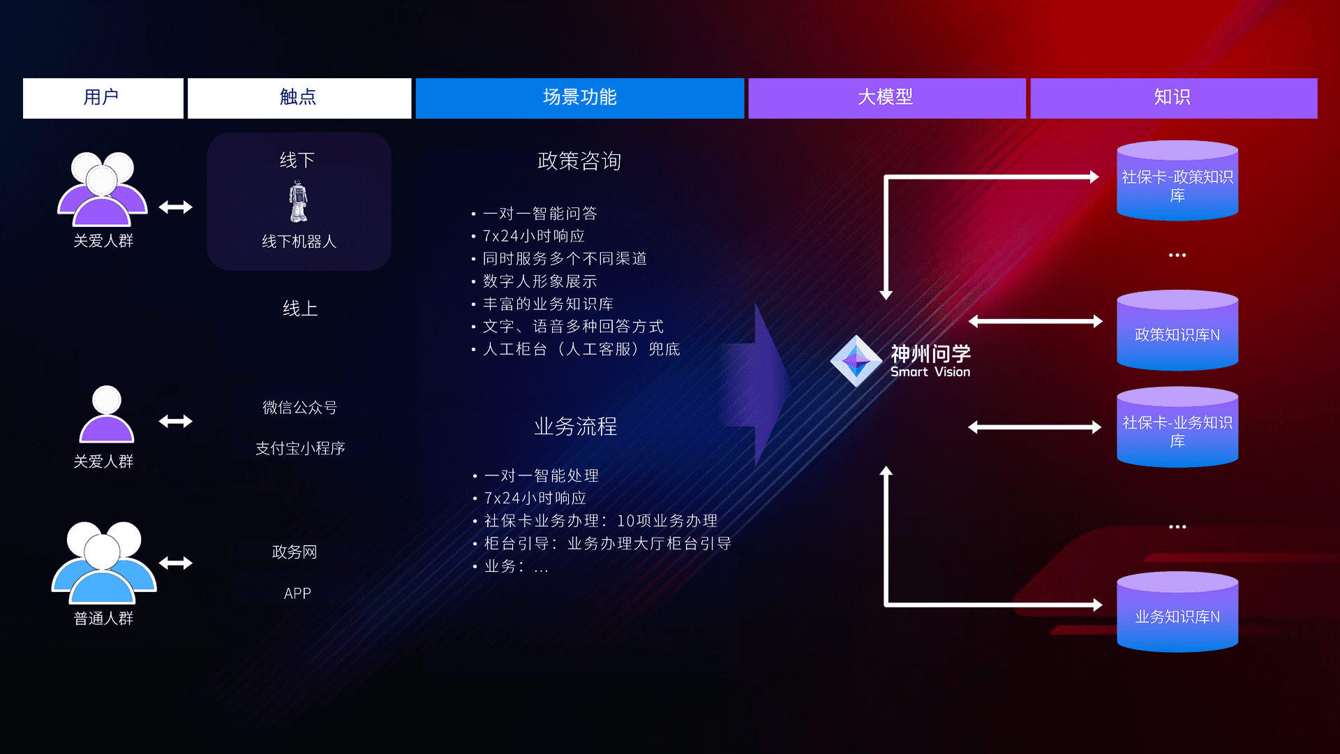 • 线上线下全覆盖:线上提供微信公众号、、、、支付宝小程序、、、、政务网、、app多种渠道,,,与线下机器人形成完整服务体系。。。